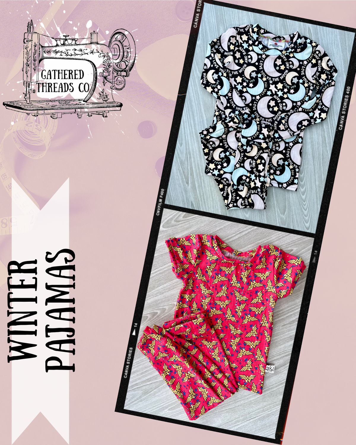 Choose from the drop downs to pick style and size. Summer pajamas have both a sleeveless and short sleeve option. Winter pajamas have both short and long sleeve options as well.